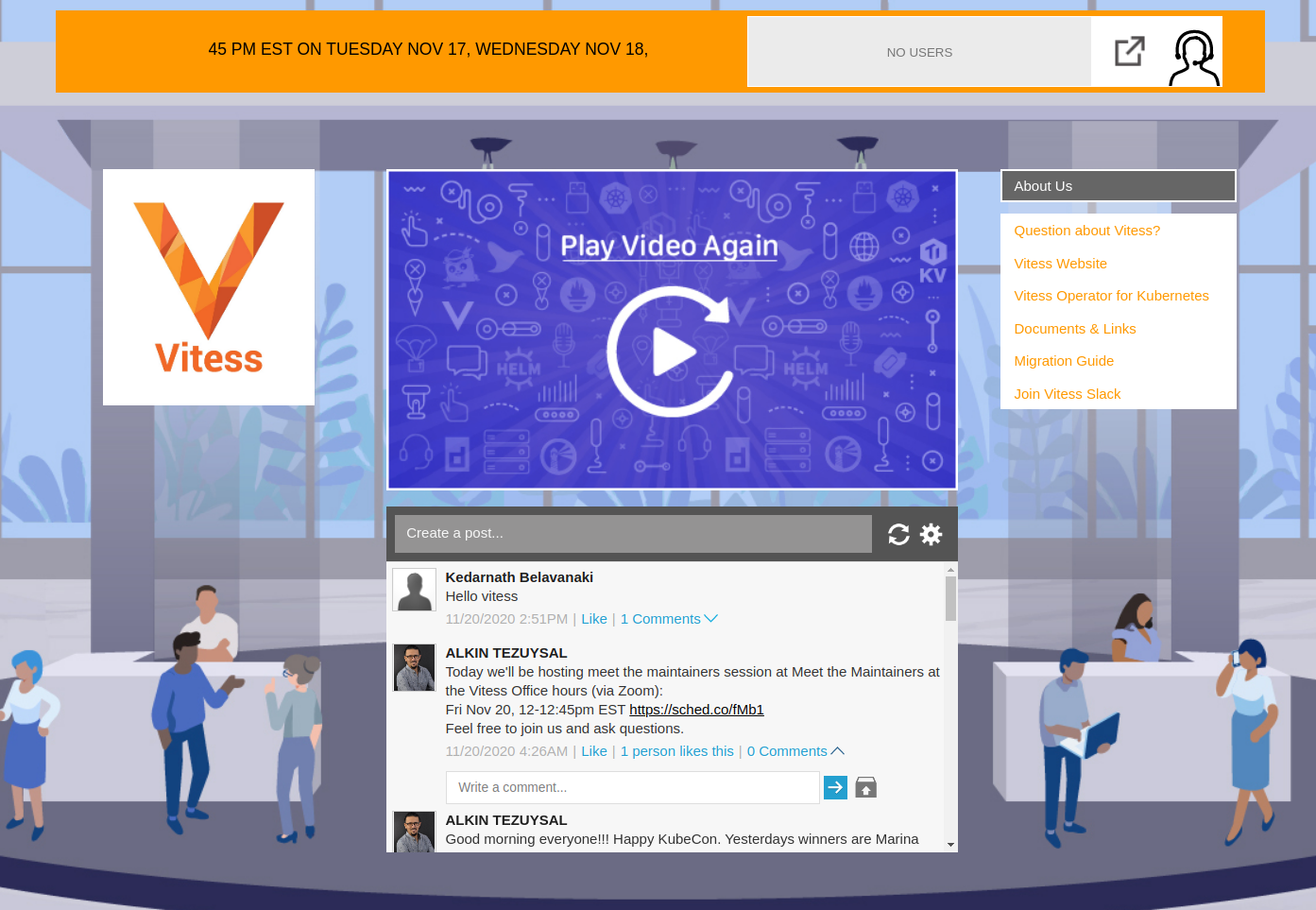 The Vitess team had a successful presence at Kubecon + CloudNativeCon North America 2020. This year's event was in a virtual format. It ran from Nov 17-20. We had 2 talks, a project booth and 3 office hours sessions. In addition, we had mentions in 2 major keynote talks.